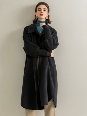 Cappotto Coccon Nero Misto Lana Vestibilità Comoda Colletto Turndown Soprabito Classico Autunno Inverno Midi Capispalla Per Le Donne & Abbigliamento Donna > Cappotti > Cappotti da Donna