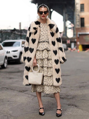 Cappotto Di Pelliccia Ecologica Con Stampa A Cuore E Risvolto Giacca