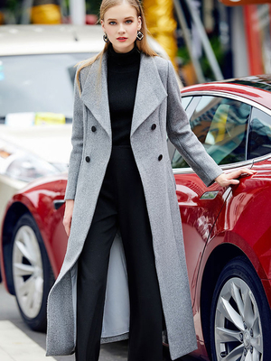 Cappotto in misto lana grigio per donna con risvolto cintura doppiopetto elegante lungo avvolgente 2025 & Abbigliamento Donna > Cappotti > Cappotti da Donna ...