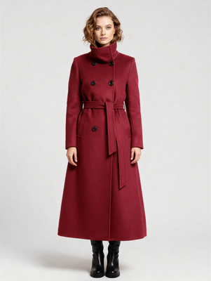 Cappotto lungo in lana con cintura doppiopetto e collo alto per donna 2026 & Abbigliamento Donna > Cappotti > Cappotti da Donna