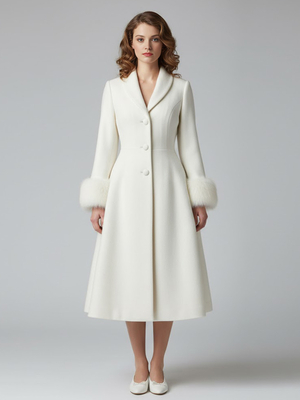 Cappotto midi svasato in lana vintage a trapezio con polsini in pelliccia sintetica staccabili bianco 2026 & Abbigliamento Donna > Cappotti > Cappotti da Donna