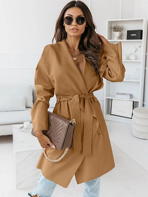 Cappotto Per Donna Cachi Collo Turndown Maniche Lunghe Casual Maxi Cappotto & Abbigliamento Donna > Cappotti > Cappotti da Donna