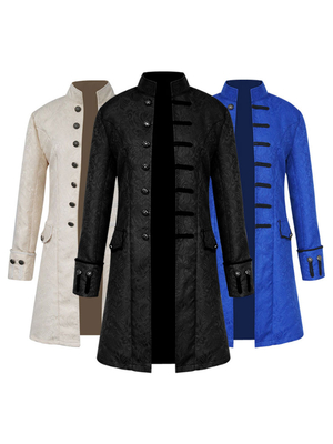 Cappotto vintage nero con colletto alla coreana soprabito jacquard medievale costumi retrò per uomo & Costumi > Costumi > Costumi Retro > Costumi Retro per Uomo