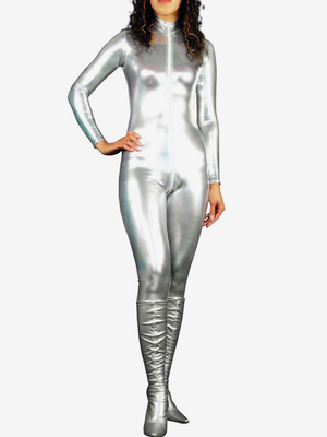 Carnevale Abbigliamento metallizzato per adulti tinta unita argenta senza piedini calzamaglia in gomma per donne Halloween & Costumi > Costumi > Catsuit & Zentai > Tuta Zentai metallizzata lucida