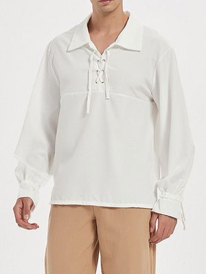 Carnevale Camicia Vintage 2025 Bianca Stringate Costumi RetrÒ in Cotone Stile Aristocratico per Uomo Costume Halloween & Costumi > Costumi > Costumi Retro > Costumi Retro per Uomo