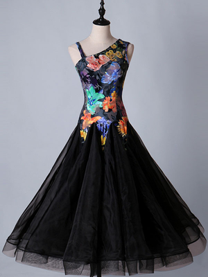 Carnevale Costume da ballo da sala per adulti nero lycra spandex fibra di poliestere ballerino da sala monocolore top&gonna separata interpretazione Halloween & Costumi > Costumi > Costumi da Ballo > Costumi da ballo da sala ...