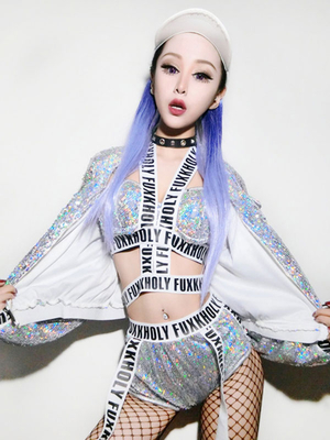 Carnevale Costume Da Ballo Jazz Donna Argento Sexy DS Club Wear 3