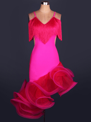 Carnevale Costume da ballo latino americano interpretazione per adulti roseo monocolore chic & moderno ballerino Latino abito in organza Halloween & Costumi > Costumi > Costumi da Ballo > Costume da ballo latino americano ...