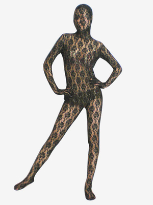 Carnevale Costume Di Zentai In Seta Velluto Nero Trasparente Stampato