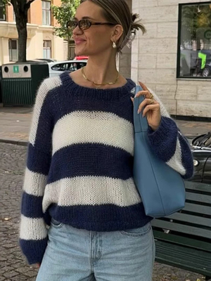 Maglione da donna bianco bicolore con scollo a gioiello e maniche lunghe maglioni oversize in poliestere & Abbigliamento Donna > Top > Maglioni