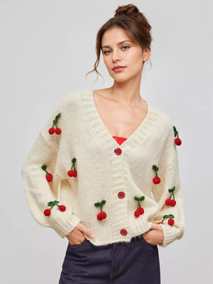 Maglioni Cardigan Albicocca Poliestere Bicolore Maniche Lunghe Scollo a V & Abbigliamento Donna > Cappotti > Cardigan