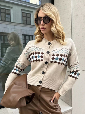 Maglioni Cardigan Cioccolato Poliestere Scozzese Bottoni Maniche