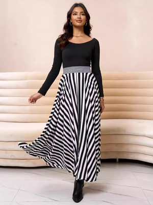 Maxi Abiti Gioiello Collo Maniche Lunghe Elegante Strisce Lungo Vestito Per Le Donne 2025 & Abbigliamento Donna > Abiti > Vestiti Lunghi
