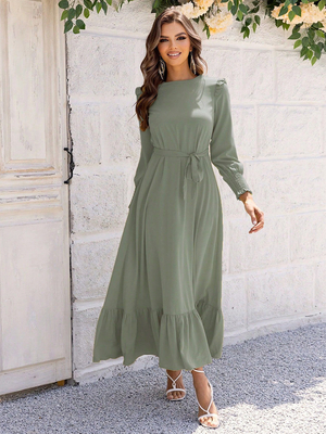 Maxi abiti maniche lunghe verde stampato floreale con scollo a V in poliestere lunghezza del pavimento vestito & Abbigliamento Donna > Abiti > Vestiti Lunghi ...
