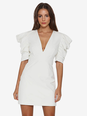 Mini abito bianco con maniche a sbuffo scollo a V schiena scoperta abito aderente 2025 & Abbigliamento Donna > Abiti > Vestiti attillati