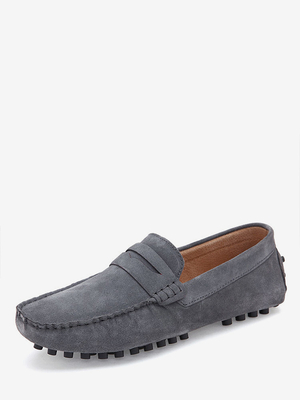 Mocassino Da Uomo Grigio Pelle Scamosciata Da Ufficio Rotondo Suola Di