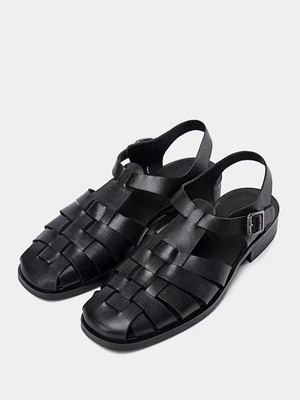 Sandali Con Punta Chiusa In Stile Romano Retrò Fibbia Vera Pelle