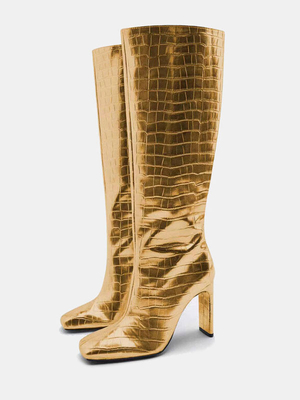 Stivali Al Polpaccio Larghi Dorati Stivali Al Ginocchio Con Tacco A