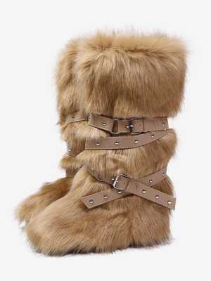 Stivali alti al ginocchio con punta tonda e fibbia da donna in pelliccia sintetica & Scarpe > Scarpe Donna > Stivali > Stivali al ginocchio