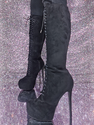 Stivali alti al ginocchio in pelle scamosciata nera Stivali sexy stringati con plateau & Scarpe > Scarpe Donna > Stivali > Stivali al ginocchio
