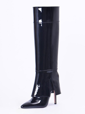 Stivali alti al ginocchio neri Stivale al ginocchio ripiegabile con tacco alto in pelle verniciata a punta & Scarpe > Scarpe Donna > Stivali > Stivali al ginocchio