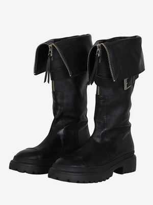 Stivali alti al ginocchio neri Stivali piatti con fibbia e polsini da donna & Scarpe > Scarpe Donna > Stivali > Stivali al ginocchio