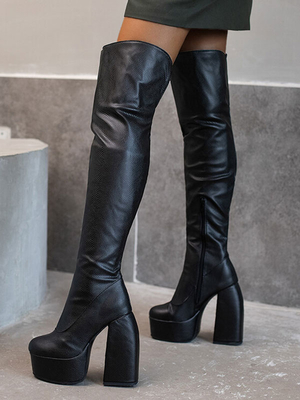 Stivali alti alla coscia da donna Punta tonda Tacco a spillo in pelle PU & Scarpe > Scarpe Donna > Stivali > Stivali sopra il Ginocchio