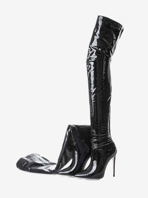 Stivali alti alla coscia neri Stivali da donna in pelle verniciata lucida con punta a punta e tacco a spillo sopra il ginocchio & Scarpe > Scarpe Donna > Stivali > Stivali sopra il Ginocchio