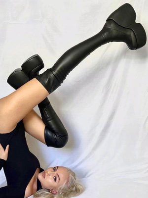 Stivali Alti Alla Coscia Sexy Stivali Con Zeppa E Plateau Con Punta