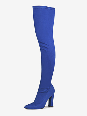 Stivali alti da donna in tessuto elastico con tacco grosso e punta a punta & Scarpe > Scarpe Donna > Stivali > Stivali sopra il Ginocchio
