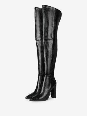 Stivali alti da donna Stivali neri con tacco grosso in pelle PU con punta a punta & Scarpe > Scarpe Donna > Stivali > Stivali sopra il Ginocchio