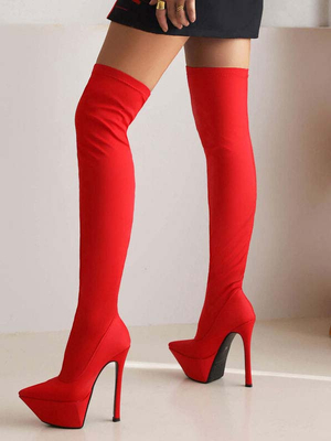 Stivali alti della coscia femminile puntato con il tallone di punta di piedi elastico stivali elastici & Scarpe > Scarpe Donna > Stivali > Stivali sopra il Ginocchio ...