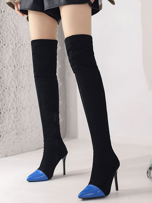 Stivali alti della coscia femminile puntato con il tallone di punta di piedi elastico stivali elastici & Scarpe > Scarpe Donna > Stivali > Stivali sopra il Ginocchio ...