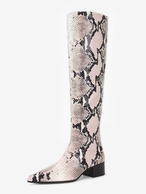 Stivali alti fino al ginocchio da donna con punta a punta motivo serpente e tacco spesso & Scarpe > Scarpe Donna > Stivali > Stivali al ginocchio