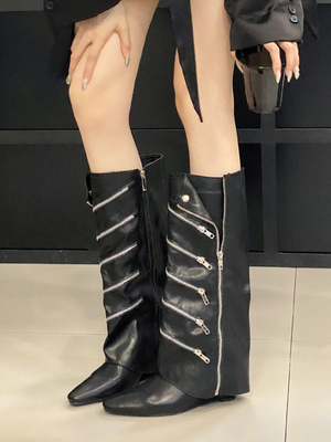 Stivali Alti Fino Al Ginocchio Da Donna Con Zeppa E Dettaglio A Catena