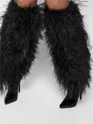 Stivali alti fino al ginocchio da donna in pelliccia sintetica con punta a punta tacco alto lunghezza al ginocchio & Scarpe > Scarpe Donna > Stivali > Stivali al ginocchio