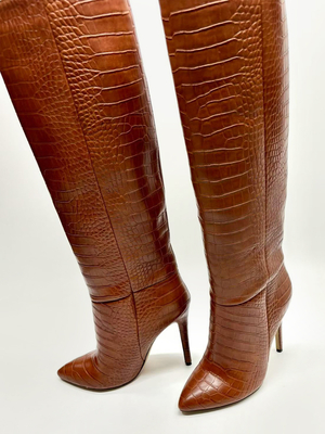 Stivali Alti Fino Al Ginocchio Marroni Con Motivo In Pietra Punta