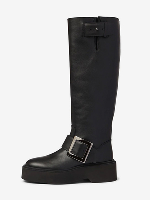 Stivali Alti Fino Al Ginocchio Neri Con Fibbia Sulla Piattaforma