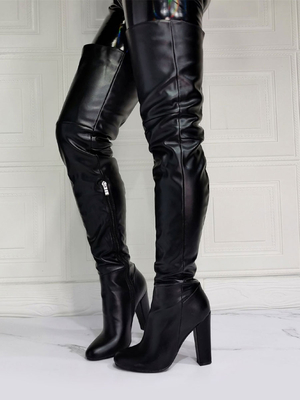 Stivali alti fino alla coscia da donna in pelle PU neri con tacco spesso sopra il ginocchio & Scarpe > Scarpe Donna > Stivali > Stivali sopra il Ginocchio