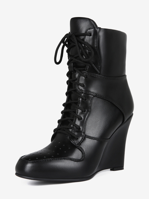 Stivali con zeppa neri da donna stivaletti con lacci e punta a punta & Scarpe > Scarpe Donna > Stivali > Stivaletti