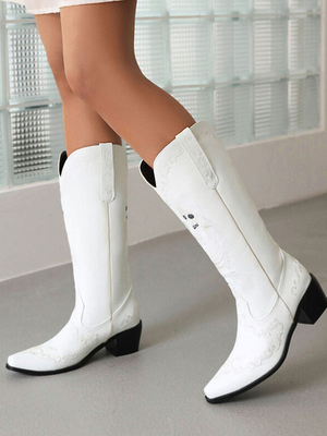 Stivali Da Cowboy Bianchi Con Punta A Punta Stivali A Metà Polpaccio