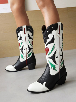 Stivali Da Cowboy Da Donna Stivali A Metà Polpaccio Con Tacco Da