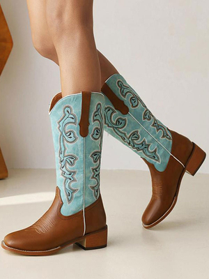 Stivali da cowboy con punta tonda in pelle PU Stivali a metà polpaccio con tacco da cucciolo Scarpe da sposa da cowgirl & Scarpe > Scarpe Donna > Stivali > Stivali per polpacci ...