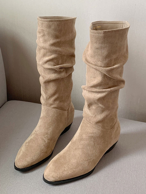 Stivali da donna a metà polpaccio con tacco grosso e punta tomaia in micro pelle scamosciata & Scarpe > Scarpe Donna > Stivali > Stivali per polpacci ...