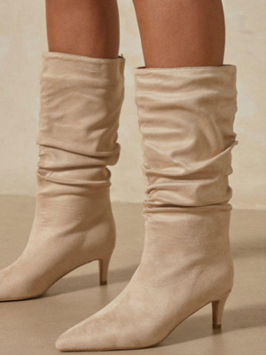 Stivali da donna a metà polpaccio Stivali a punta con tacco a spillo in pelle PU bianca ecru & Scarpe > Scarpe Donna > Stivali > Stivali per polpacci ...