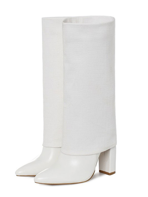 Stivali da donna a metà polpaccio Stivali a punta con tacco a spillo in pelle PU bianca ecru & Scarpe > Scarpe Donna > Stivali > Stivali per polpacci ...