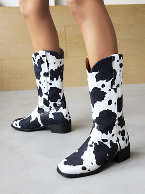 Stivali da donna a metà polpaccio Stivali da cowboy con punta tonda in pelle PU & Scarpe > Scarpe Donna > Stivali > Stivali per polpacci