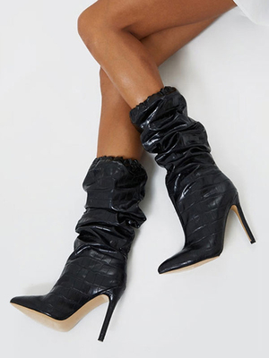 Stivali da donna a metà polpaccio Stivali neri con tacco a spillo in pelle PU a punta & Scarpe > Scarpe Donna > Stivali > Stivali per polpacci