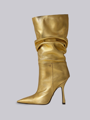 Stivali da donna al polpaccio con tacco a spillo slouch in pelle bionda brillante & Scarpe > Scarpe Donna > Stivali > Stivali per polpacci