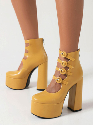 Stivali da donna caviglia con bottini dettagliati con fibbia rotonda con tacco rotondo & Scarpe > Scarpe Donna > Stivali > Stivaletti